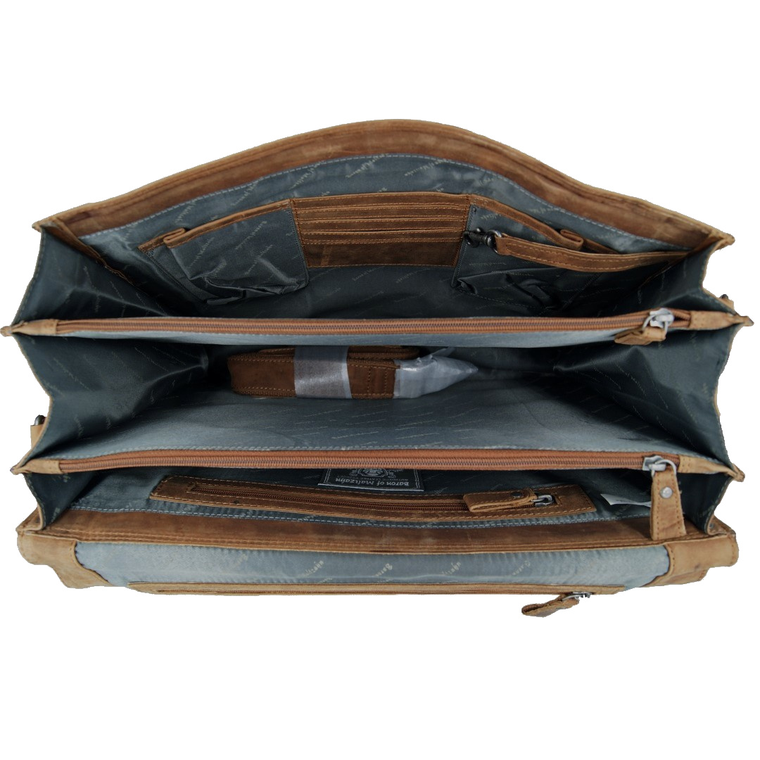 Durch das einzigartige Design verströmt die große Aktentasche aus Grassland-Leder eine Aura von Wertigkeit und Individualität. Tragen Sie sie ganz nach Belieben in der Hand oder lässig über der Schulter und Sie werden die Blicke andere Menschen fast magisch anziehen.